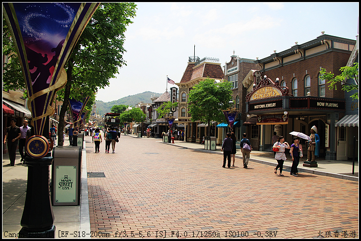 香港迪士尼 乐园设有一些独一无二的特色景点、两家迪士尼主题酒店 , 以及多彩多姿的购物、饮食和娱乐设施。乐园大致上包括四个主题区(美国 加州8个,佛罗里达 和东京 各7个,巴黎 5个),与其它迪士尼乐园相近,包括:美国 小镇大街、探险世界、幻想世界和明日世界 。除了家喻户晓的迪士尼经典故事及游乐设施外,香港迪士尼乐园还配合香港 的文化特色,构思一些专为香港 而设的游乐设施、娱乐表演及巡游。在乐园内还可寻得迪士尼的卡通人物米奇老鼠 、小熊维尼、花木兰 、灰姑娘 、睡公主 等。