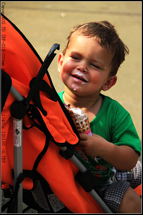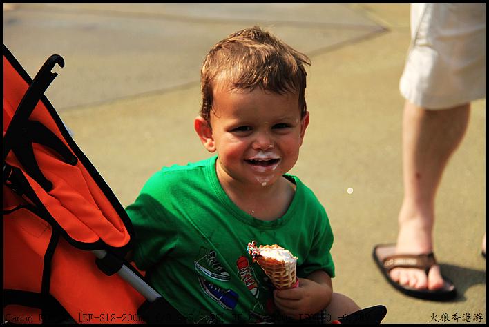 巡游结束后,看到这个可爱的孩子。。结果虫虫也非要闹着吃ICE CREAM。。找了半天才找到哪有卖。。在小小世界的门口哦。哈