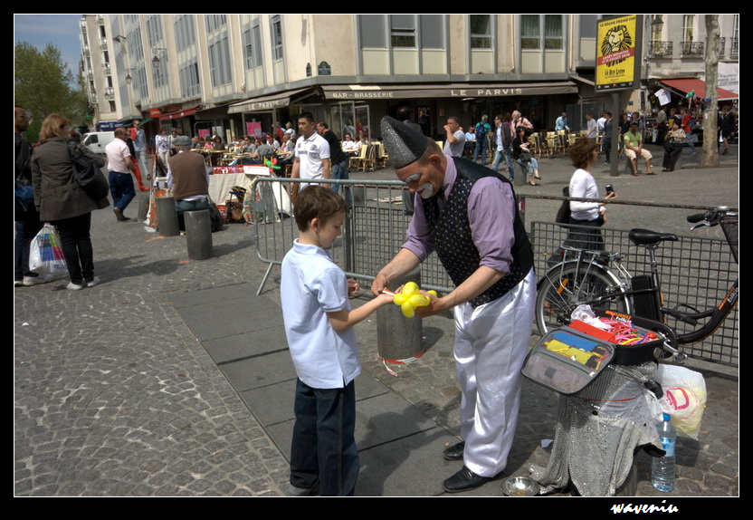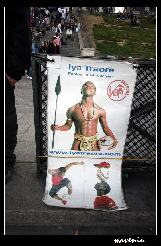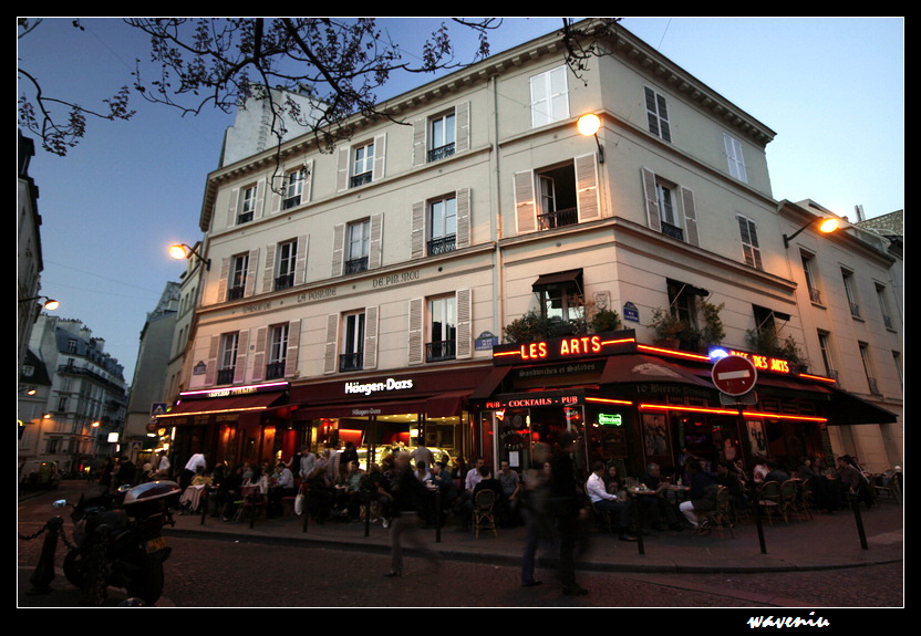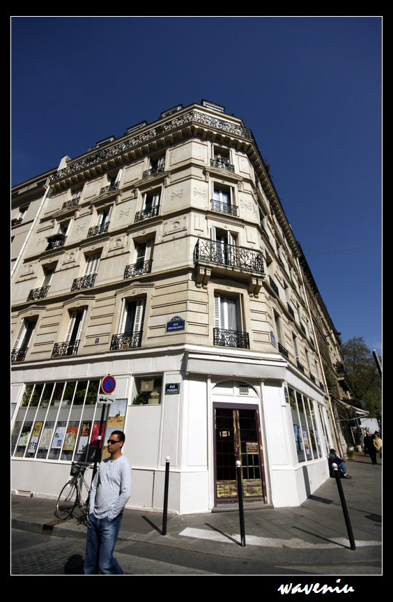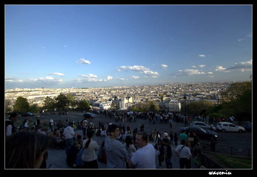 博物馆出来时间还早,犹豫了一下,决定去蒙马特尔高地。为什么说犹豫了一下呢,是因为之前听说那边治安不好。结果一路上坐地铁,遇到的几乎全是阿拉伯裔人,各个人高马大穿着打扮有点像小混混,加上地铁里灯光昏暗,稀稀落落没什么人,心里是有点毛,手里拎着三脚架,心想万一不行就比划比划。总算硬着头皮坐到了蒙马特高地,出来一看,oh,my God,阳光灿烂,游人如织,NND,虚惊一场。