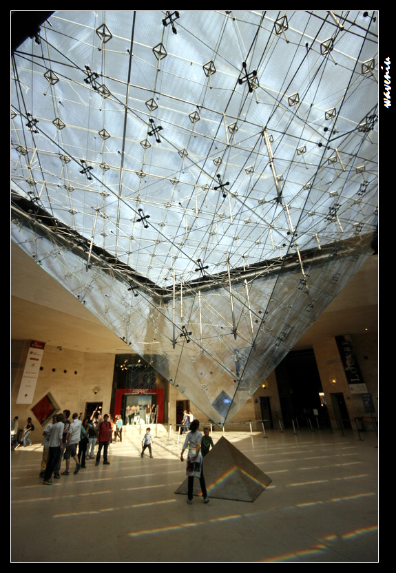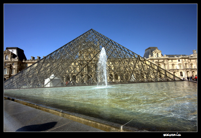 后来参观过卢浮宫 后,我对这个金字塔的理解是表现了法国 与北非 (埃及 )的特殊关系,以及卢浮宫 里藏品的特色(大多来自北非 )。