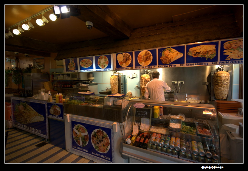 6 在法国 一般餐馆里坐下来吃一套餐的话,差不多12-13欧,如果是土耳其 烤肉,只要5-7欧,分量够顶两顿的。