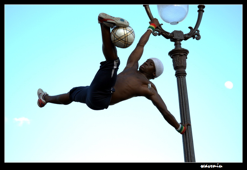 在这里遇到了一个足球杂技表演者,非常精彩!