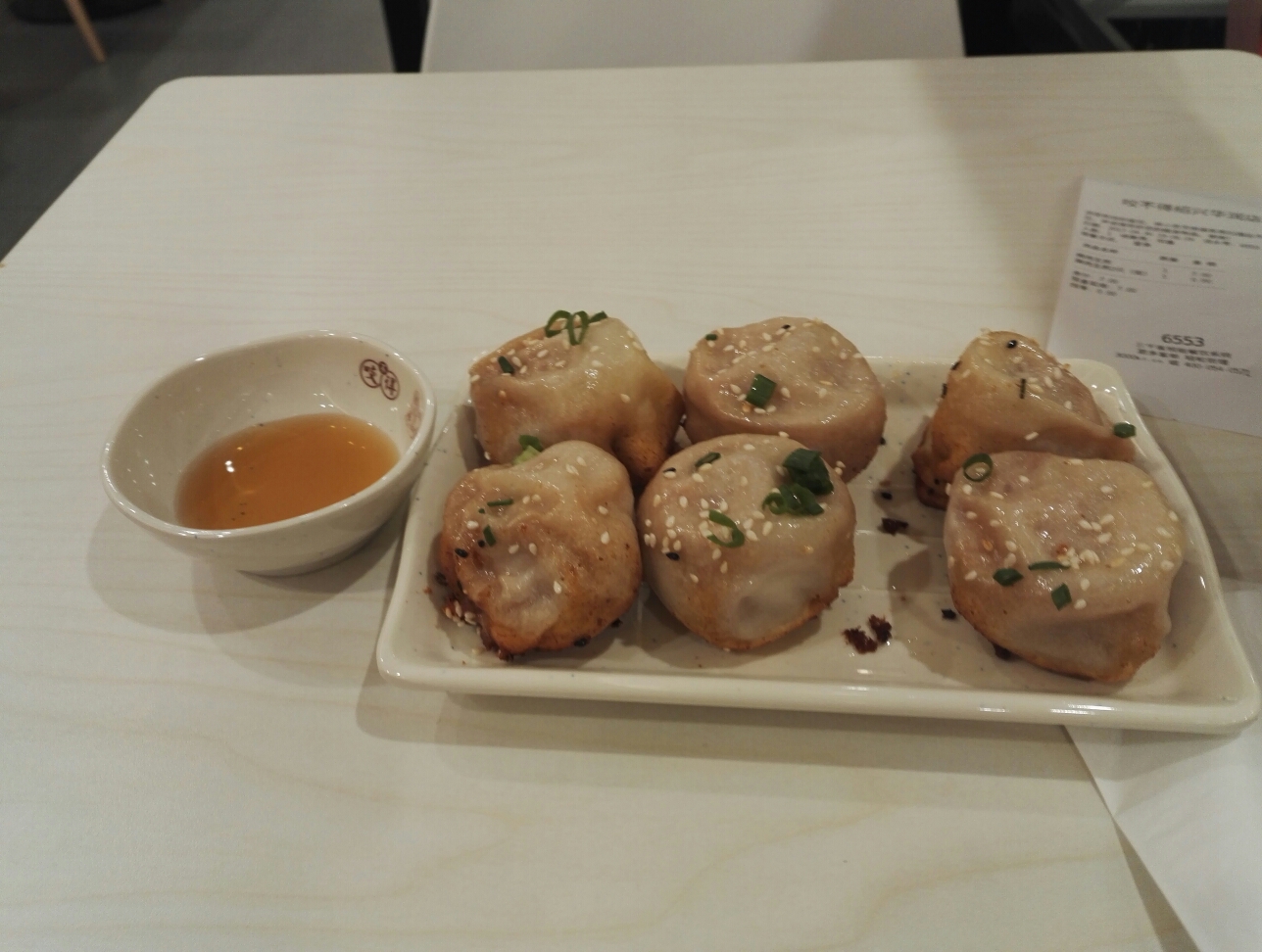 晚上是在解放南路上的“高祖咬不得生煎”吃得生煎馒头,六个7元,再送两个。