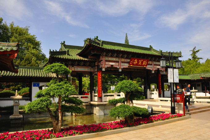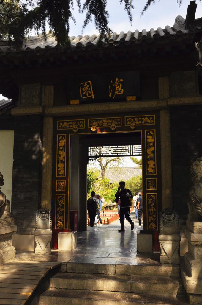 我们是从酒店步行去的趵突泉,从南门进入,一看建筑风格就是南北兼融的特点。趵突泉南靠千佛山,北望大明湖,是以泉为主的国家5A级景区,趵突泉居济南72泉之首,被誉为天下第一泉。其南门富丽堂皇,雍容华贵,横匾“趵突泉为”乾隆御笔,有中国园林第一门美称。