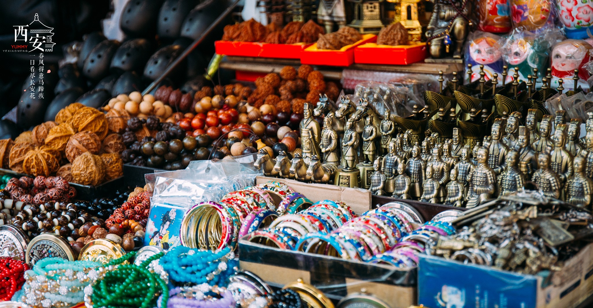回民街也有很多纪念品店,琳琅满目的~其中比较推荐的是兵马俑和皮影兵马俑了吧。感觉很多小商品全世界各地都有卖,比如套娃