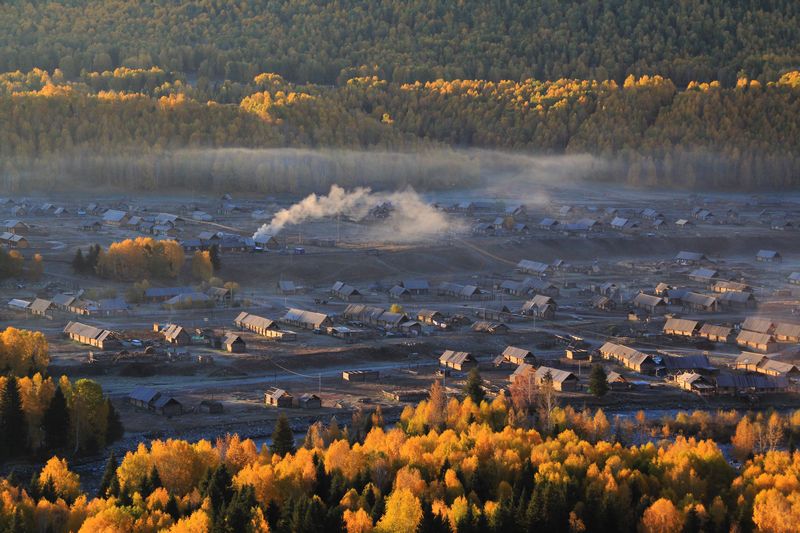 日出../travel-scenic-spot/mafengwo/10832.html(禾木 ) 村 升起袅袅炊烟