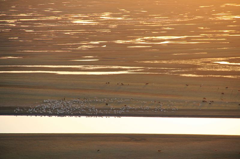 真想做那群中的一只,在落日余晖下