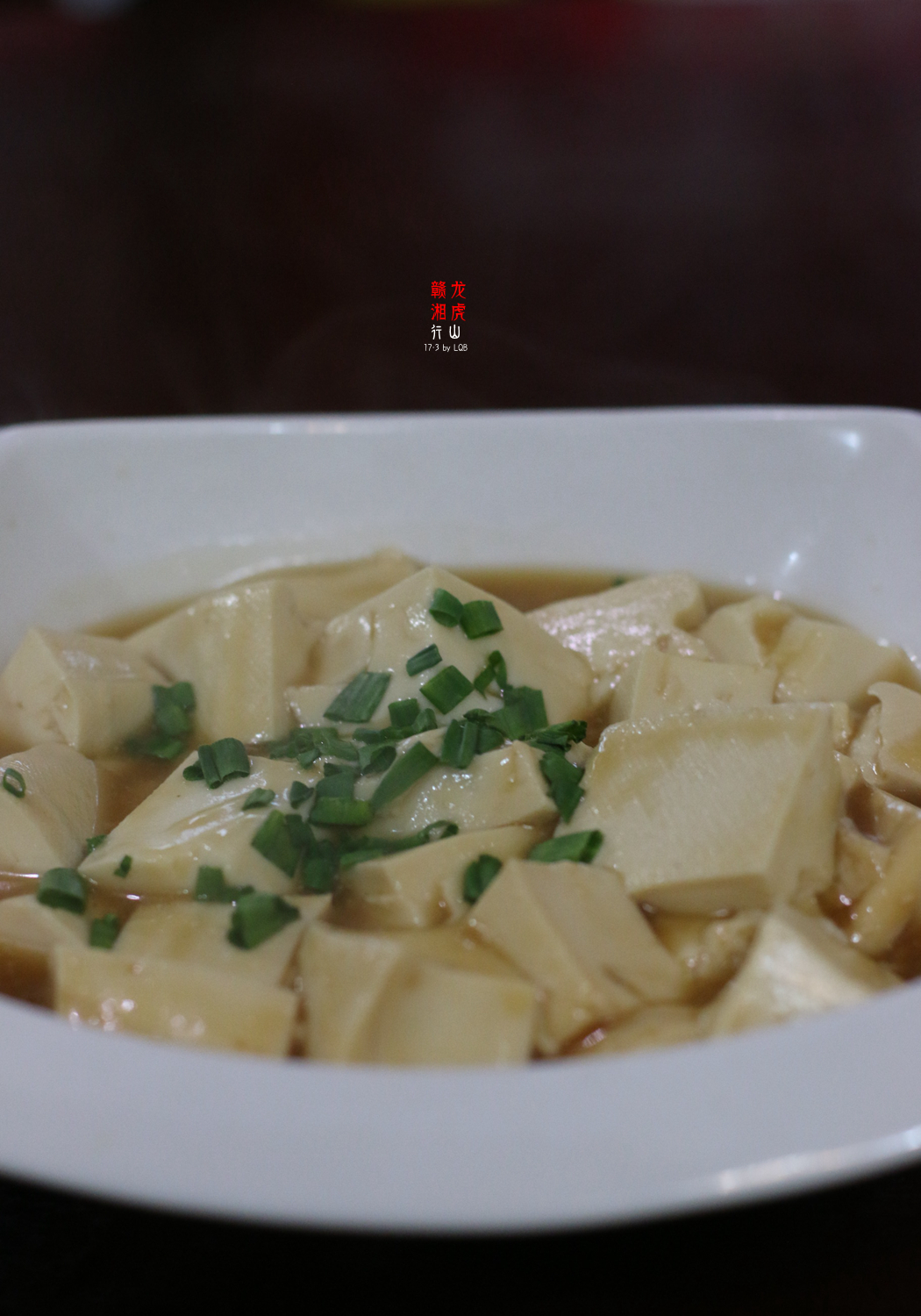 出门旅行两件事:摄姑娘,吃豆腐。这上清豆腐自然是路过不能错过,顺便试试那泸溪活鱼。按图索骥,象山菜馆。时值饭点,楼上楼下目测仅我一个客人,这是淡季的好处。