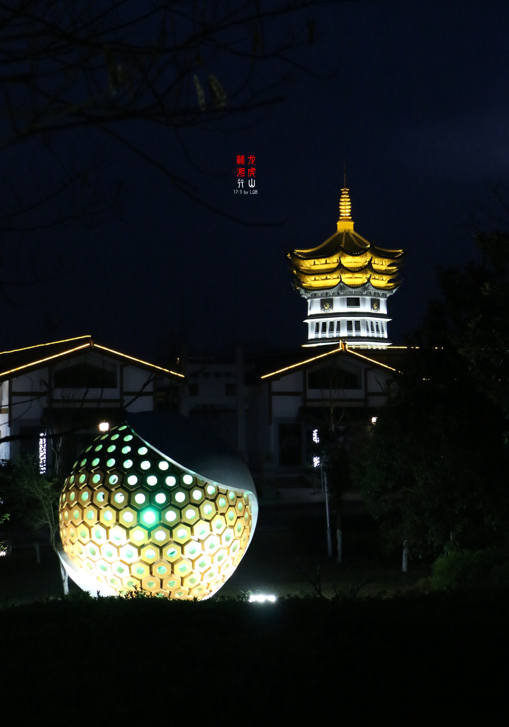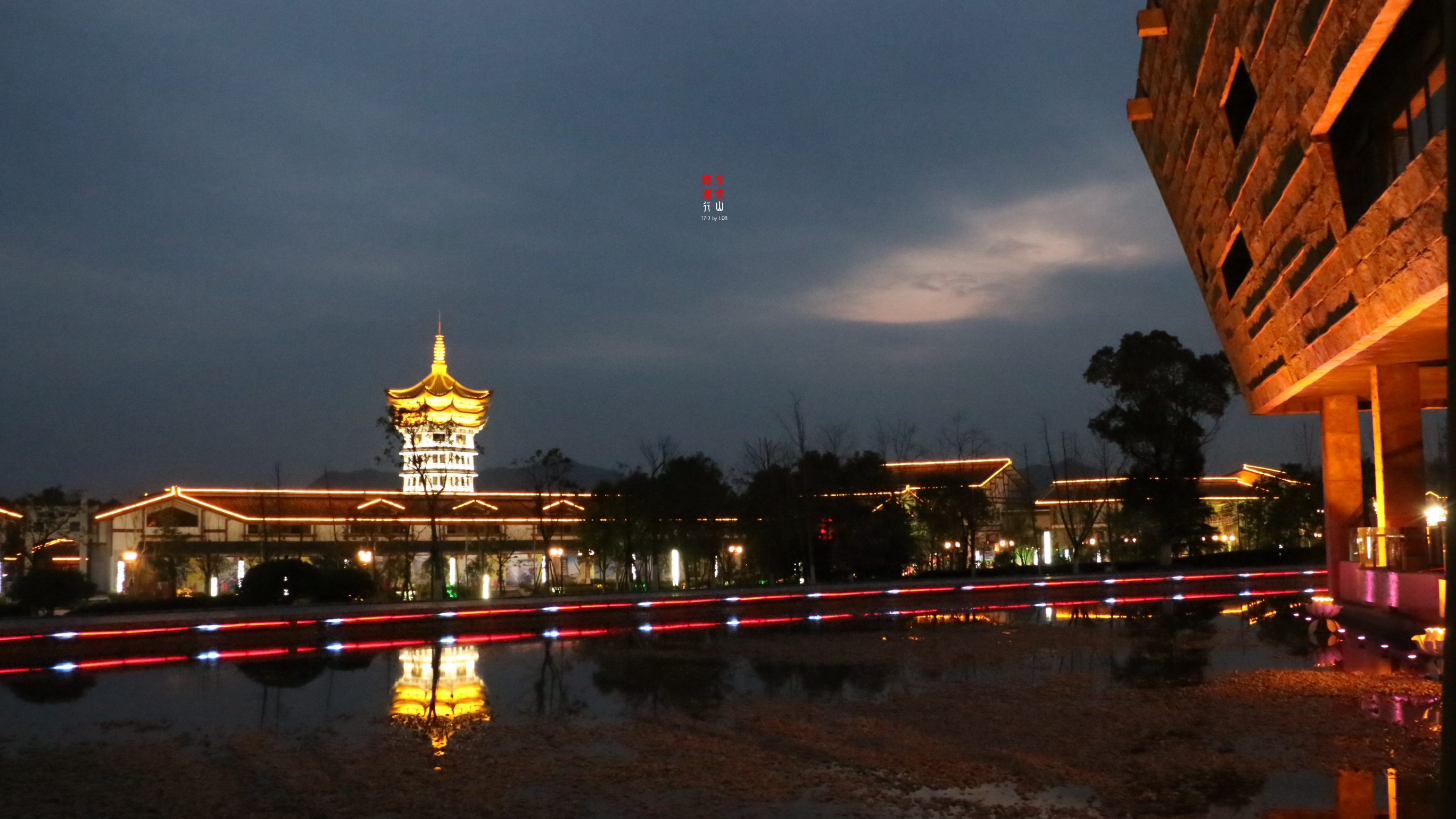 云层澄明,高塔倒映,霓虹闪烁,流光溢彩,静悄悄的只闻自己的脚步之声。没有白日里游客的蜂拥,才见道家的无为清净。