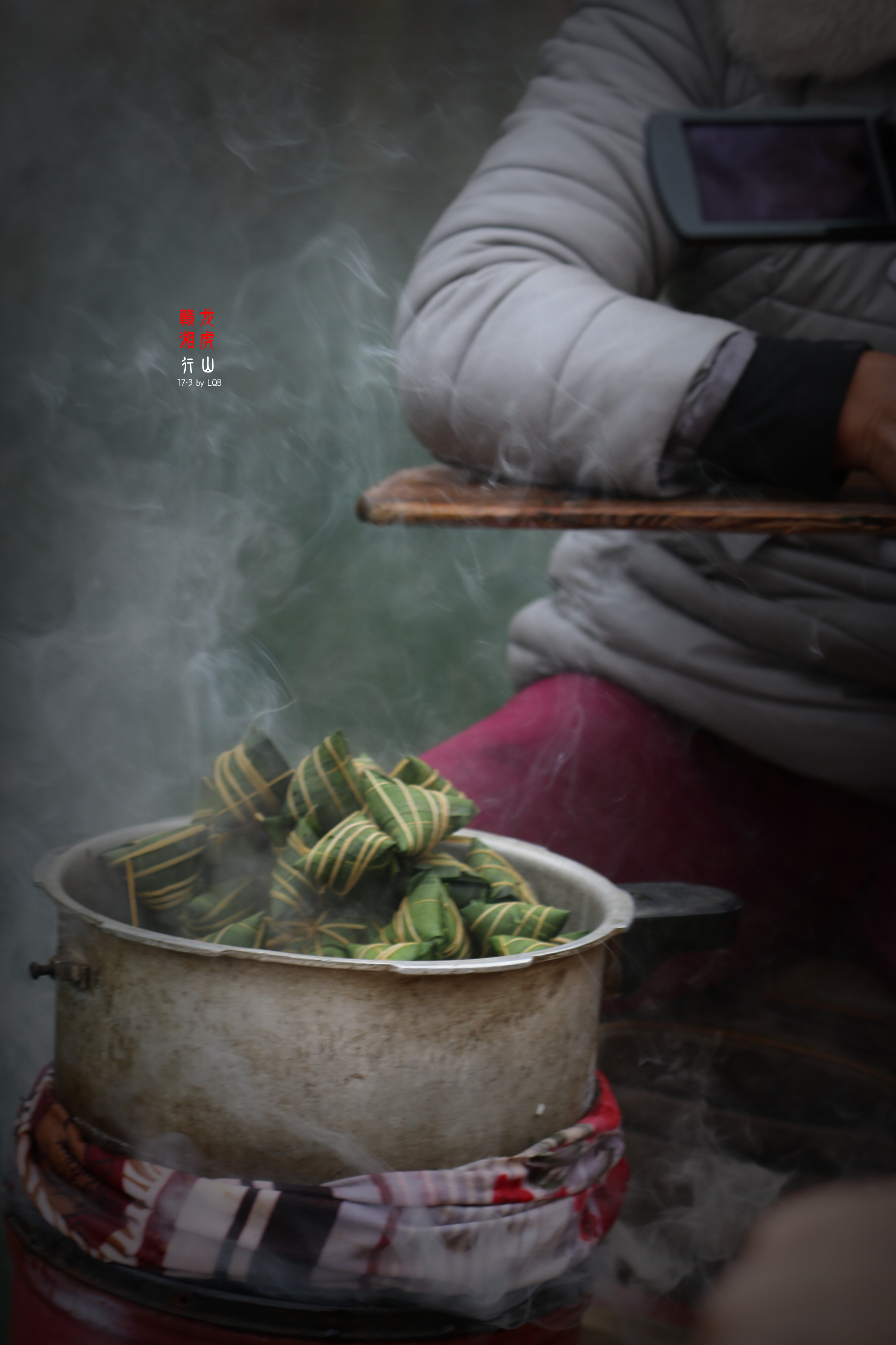 丹霞炊烟。岸边洗濯的农妇看到游客竹筏,撑一叶扁舟靠的近前叫卖热粽。水鸟在空中成人字形翱翔,不时落在滑翔于水面,惊起一波涟漪在舟前。所谓龙虎山的美,大概都在于此了吧?