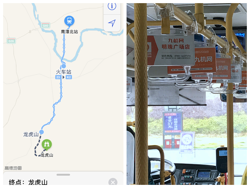 南昌西-鹰潭北-公交23-鹰潭站-K2-龙虎山,夕阳低垂之时,龙虎山已经近在咫尺,先行投宿。