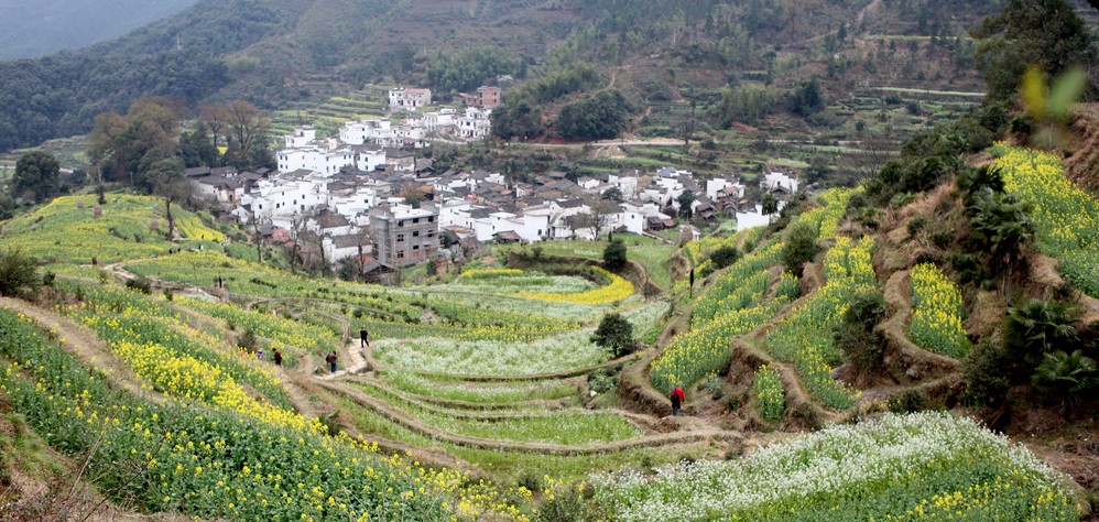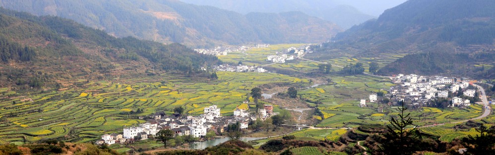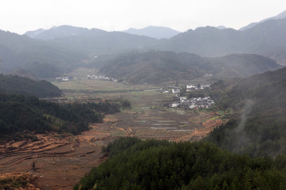 远远地望去,能看到一座座村落依依地散落在山脚下。向导告诉我,从这个角度看不到里坑村,被山给挡住。