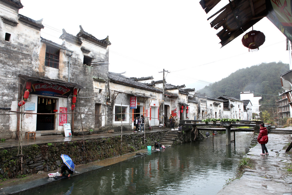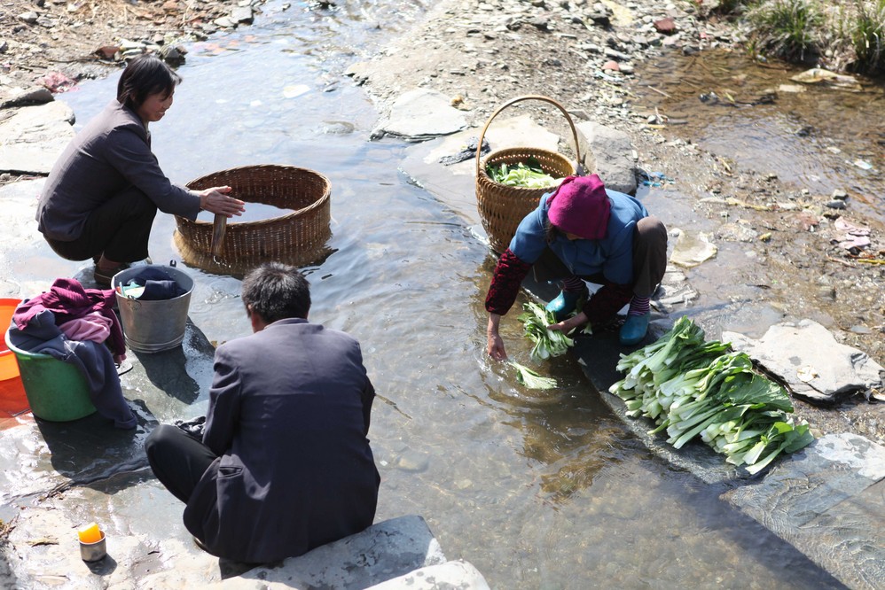 穿村而过的小溪,村民在这里洗菜、洗衣。村民们说,这些年水的质量不如以前了,有很多前来旅游的旅客十分不注意细节,随手就把废物丢进了小河里。