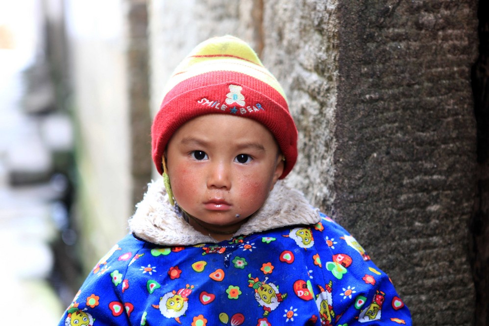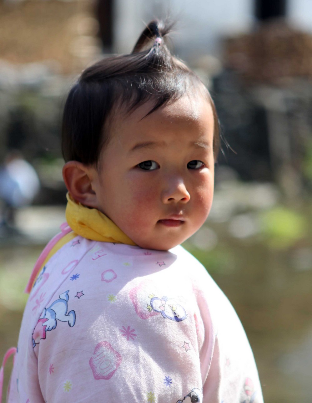 在下山的途中。经过一个乡村,在一个巷中,拍摄到一个小孩子。从这个乡村孩童的清澈目光中,我们可以读出很多东西……