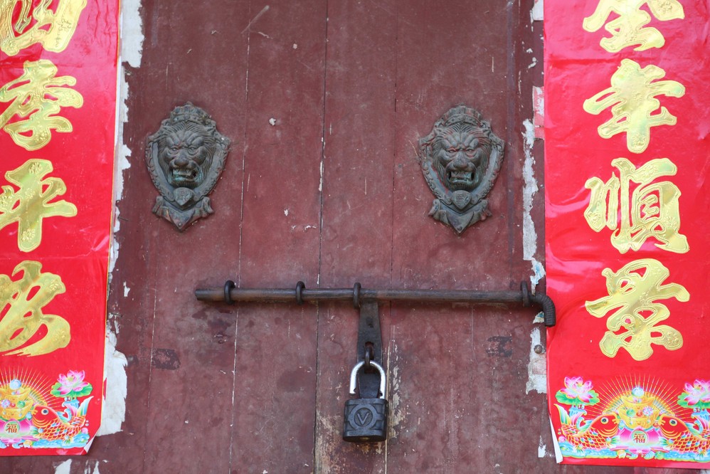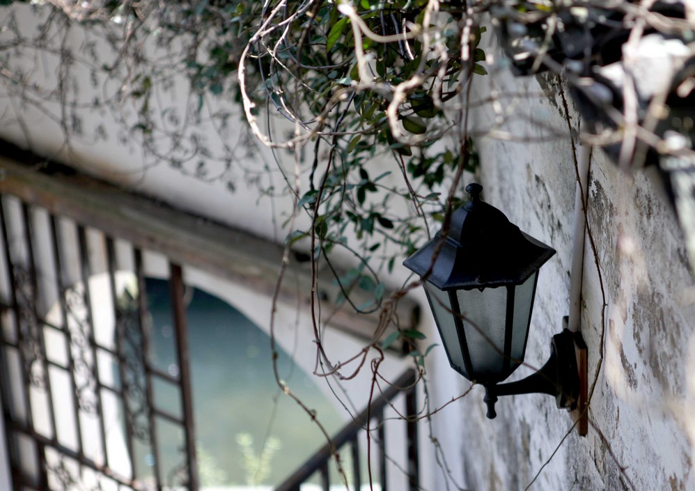 在古香古色的中国 传统的建筑中,突然发现有一个西式的灯。