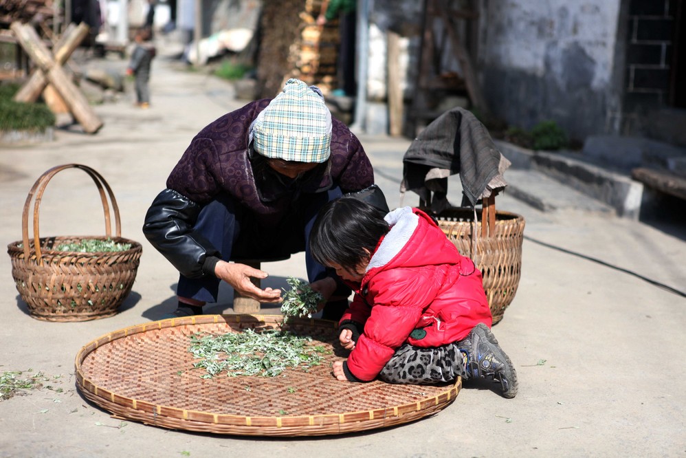 据老人告诉,这是从山间采来的野菜,祖孙俩人在择菜。