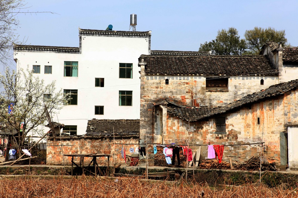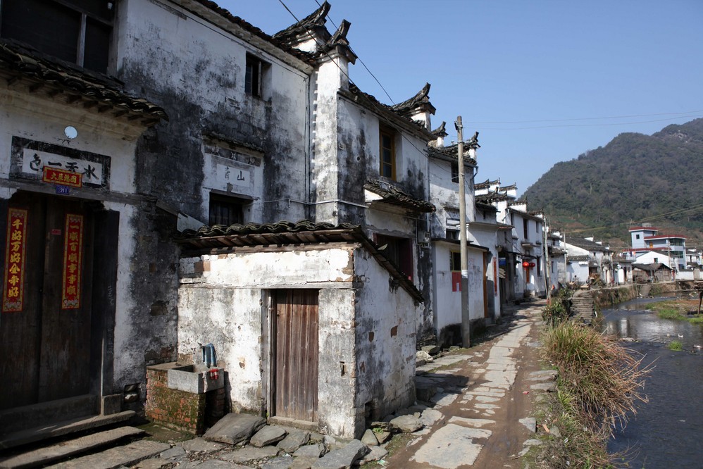 一条小溪贯穿村庄,那斑驳的房屋外墙仿佛在述说着曾经沉甸甸的过去……