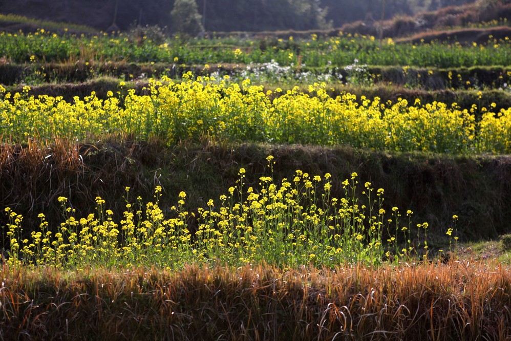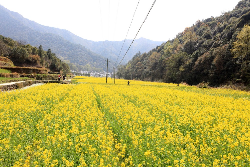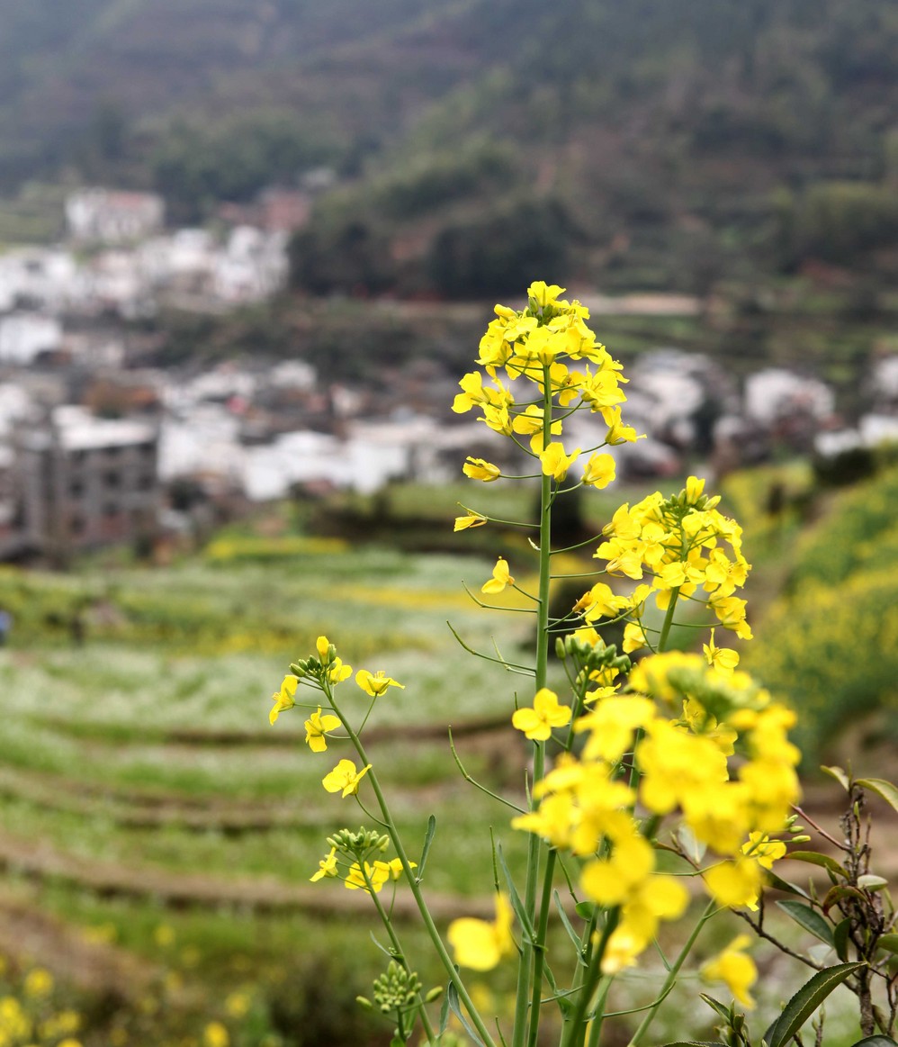 这张照片就是在第一观景平台拍摄的,由于季节、温度及油菜品种的问题,江岭的油菜花并没有全部绽放,据当地人说,今年全部开放要到四月底。