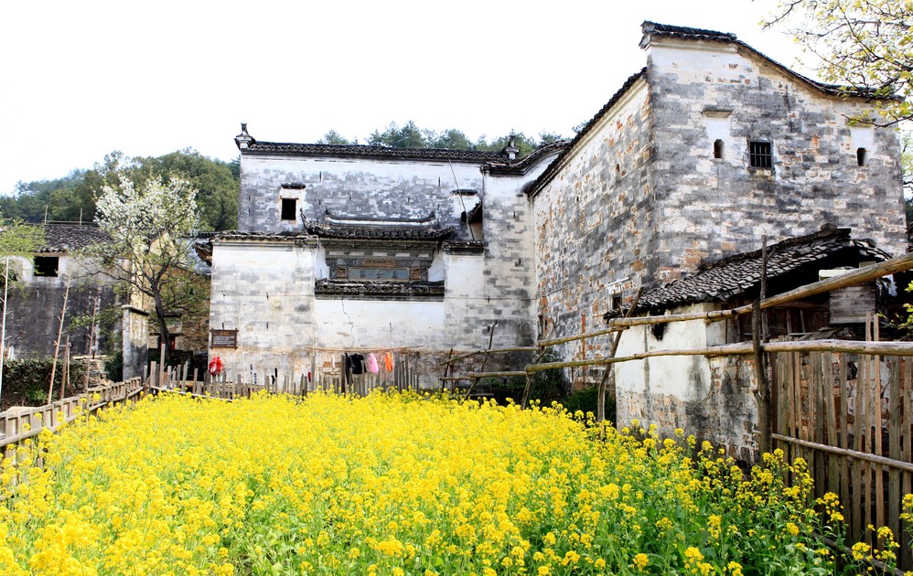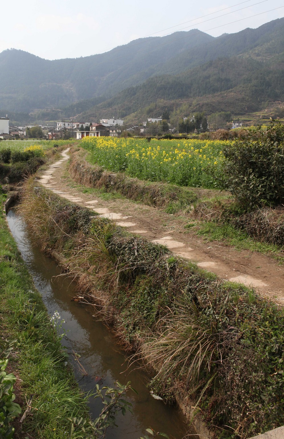穿过下晓起,就可以看到大片大片的油菜花开。沿着一条石板小径,就可以看到尽头就是上晓起。