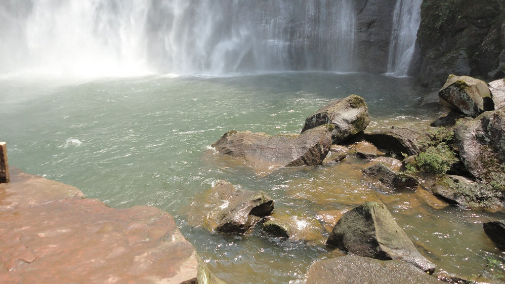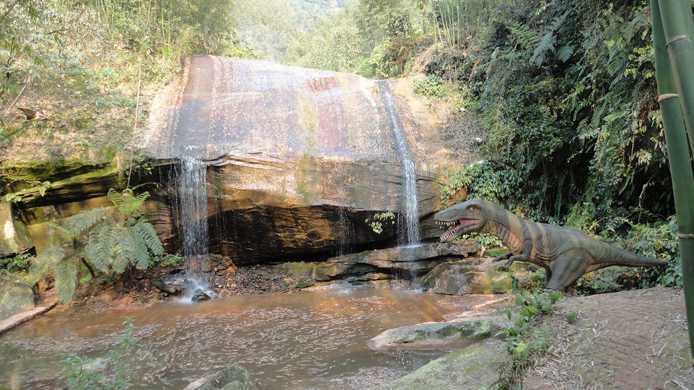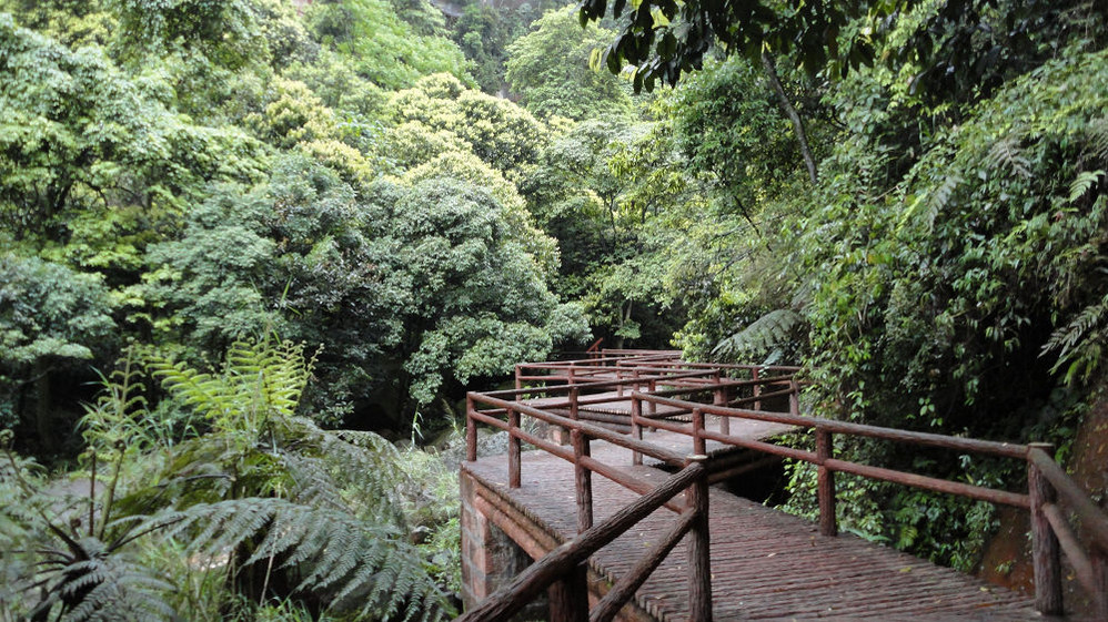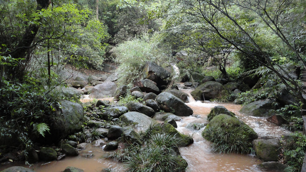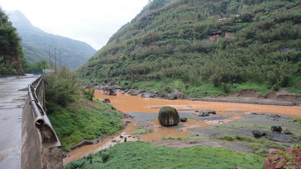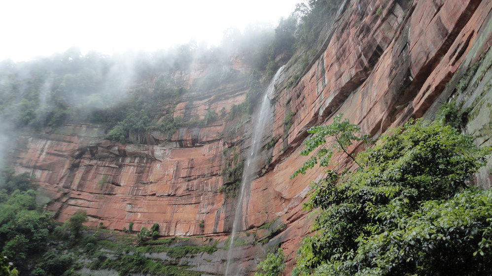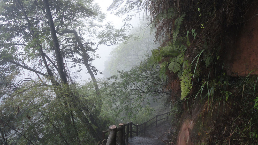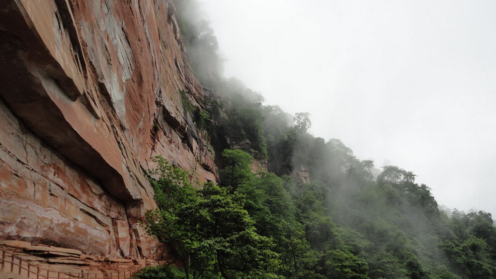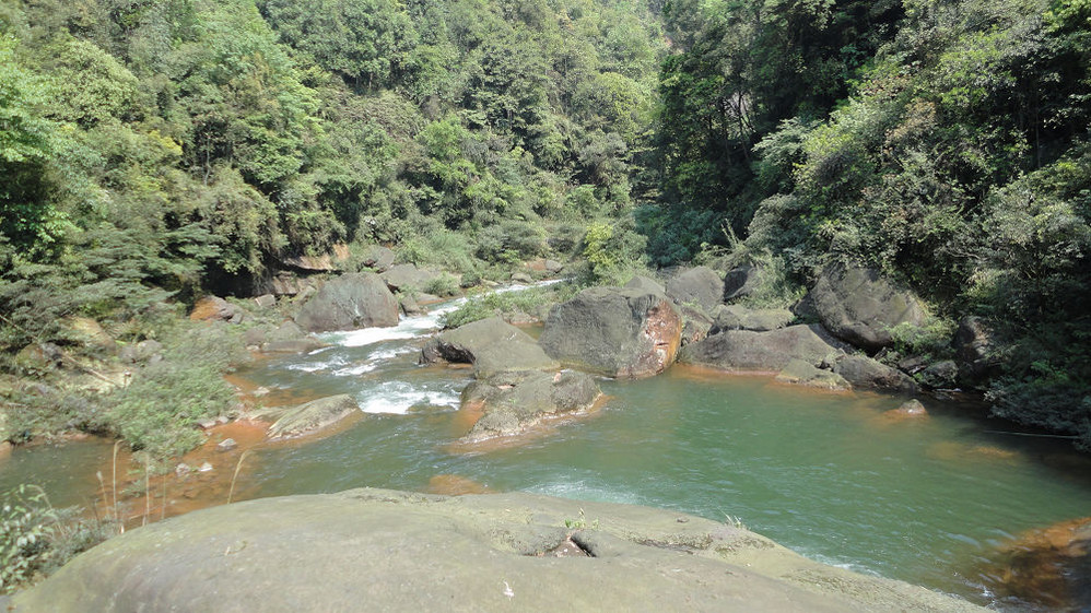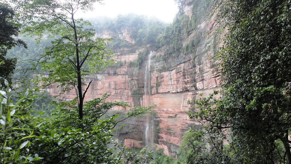 5月1日,上午游赤水大瀑布(十丈洞),中午在复兴镇上吃饭,下午游红石野谷(杨家岩),之后到四洞沟,因天色已晚没有进入。晚上到金沙(竹海、桫椤景区入口)住宿,路遇暴风雨,折断不少行道树、竹,第二天起来一看,昨天还青青的赤水河变成了真正的“赤”(红色)水河。