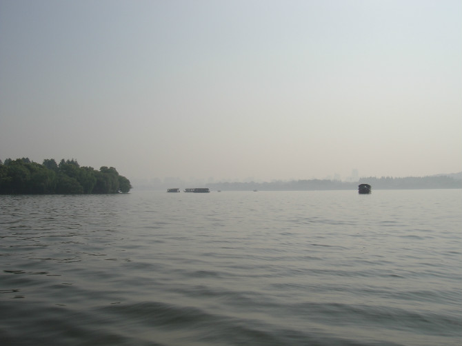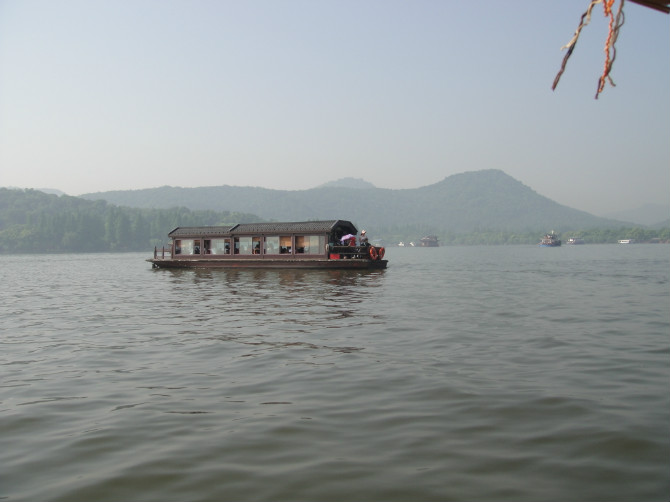 西湖龙舟,其实这个只是普通的船啦,我们没有那么幸运看到那种