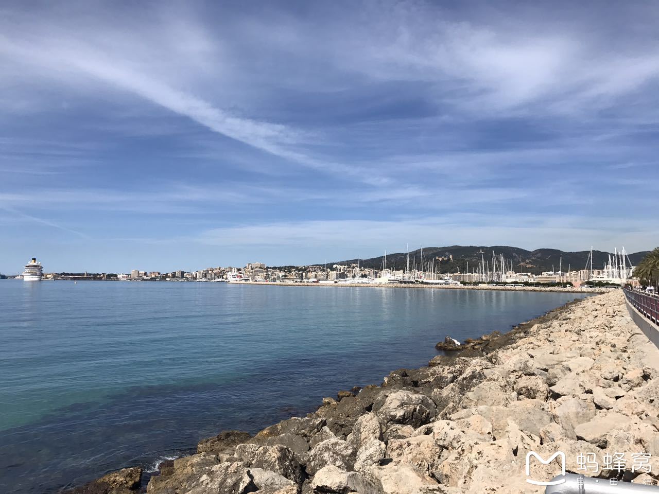 图上定位的点就是马略卡岛的具体位置啦,离西班牙本土最近的一个离岛群,巴塞罗那直飞一小时,其中空中飞行时间不到半小时;大多数地中海邮轮也会选择停靠的一个小岛,所以岛上会有邮轮团的光顾,但大多数还是北欧、德国、英国来的散客为主,旅游业十分发达,也就是说即使小镇上服务人员也都会说英语哦~~~