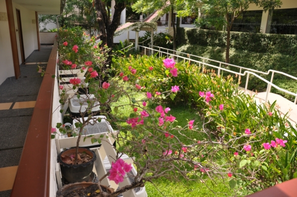今天没有安排一日游的行程,整天是在酒店玩的,所以吃完早餐就开始了酒店的探索之旅,房间门口的花朵。