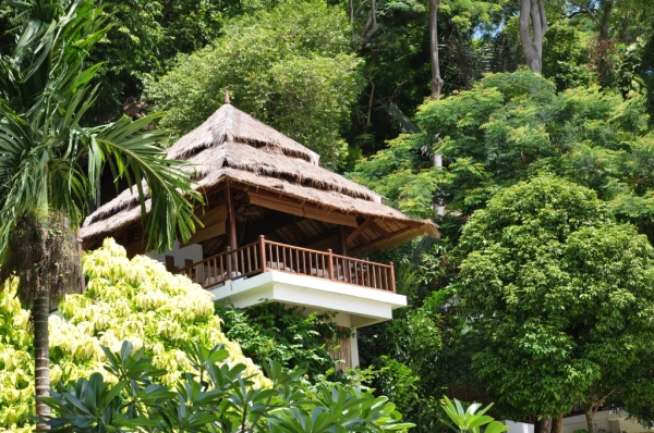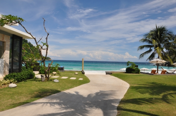 酒店的工作人员把我们的行李运上接驳车,带着我们沿着小路开了10分钟左右,眼前的景色豁然开朗,这才是我们期待中的RACHA酒店。