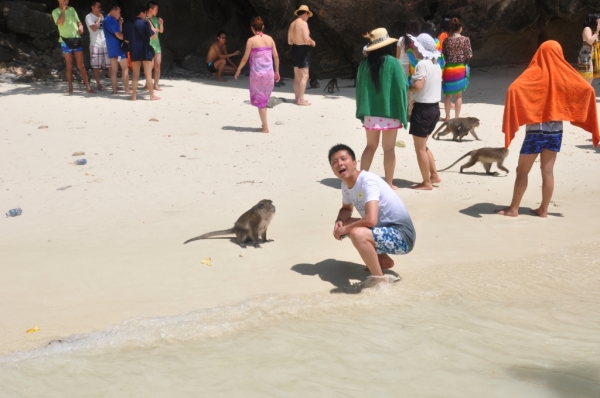 第三个景点是猴岛,这些猴子的胆子都很大,会问人要吃的,团里的一个女生由于靠的太近还被抓伤了。
