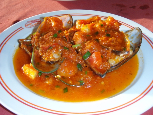 午饭是在悬崖餐厅解决的,茄汁明虾,味道不错。