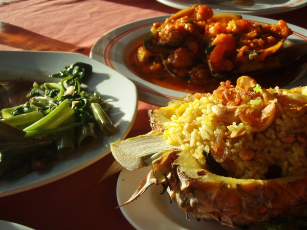 冬荫功,椰汁蟹,菠萝饭,两杯西瓜汁,一共750B,这居然是我们在普吉吃到的最便宜的一餐饭。