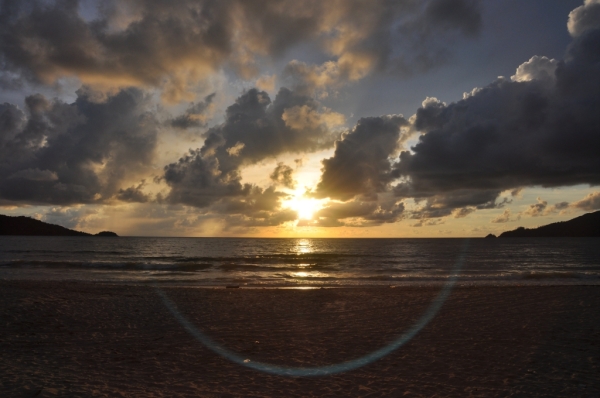 坐在海滩旁看日落,没有巴东 的太阳红,但也别有一番味道。