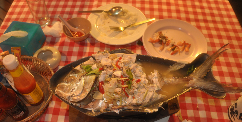 晚饭还是在悬崖餐厅解决的,点了一条柠檬汁鱼,没想到上来是那么大一条,完全吃不下。
