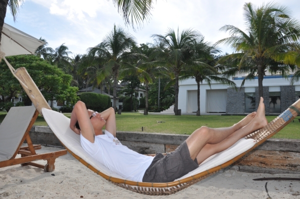 深潜后在沙滩上的躺椅上吹着海风,心境便如天空般的晴朗。