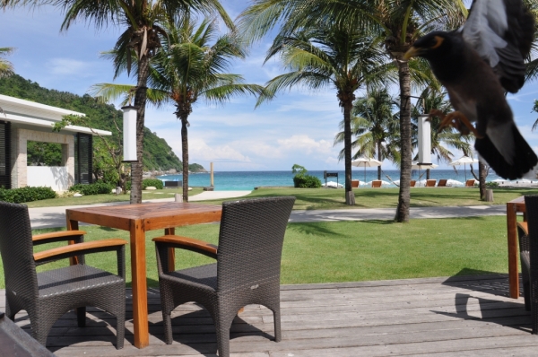 9:00要去吃早饭了,穿过花园般的小径,来到餐厅,自助早餐和其他饭店并无不同,只是配上着无敌海景,着实让人胃口大开。