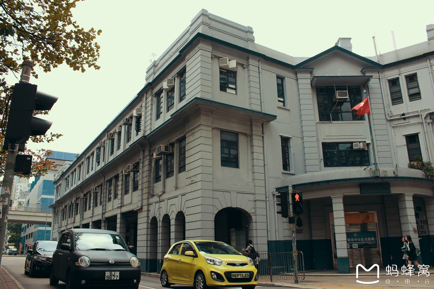这里就是九龙区最古老警署之一,油麻地警署——楼高三层,有传统的圆柱门廊。