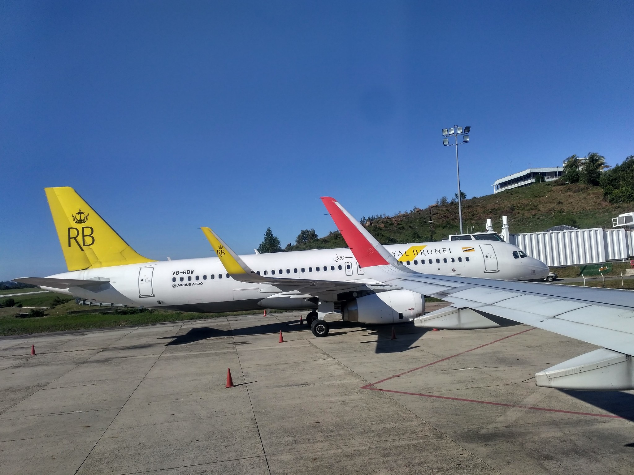 4月8日深夜出发,好吧,上图是在文莱机场拍的土豪航空(文莱航空)的灰机,像我这样的屌丝,即使是带着妈妈也都是坐着亚航的红眼航班,经吉隆坡转机到斯里巴加湾的,因为是深夜,并没有拍到亚航小红机,就拿小黄凑数吧~