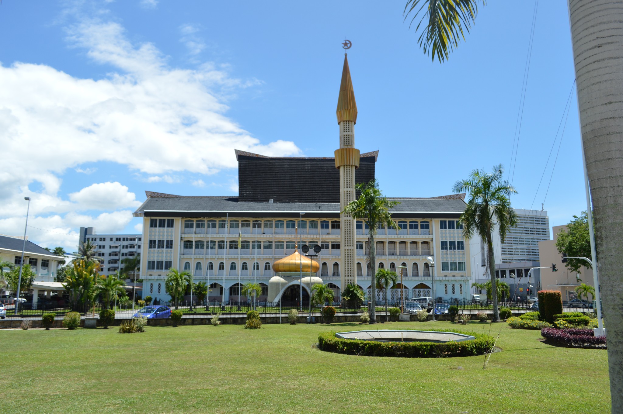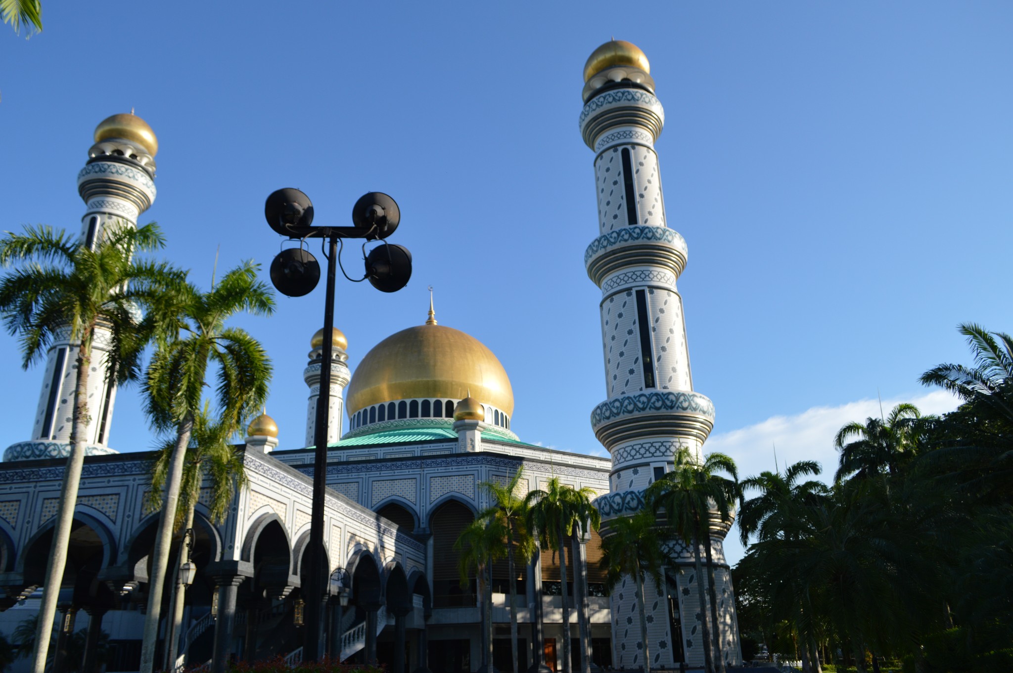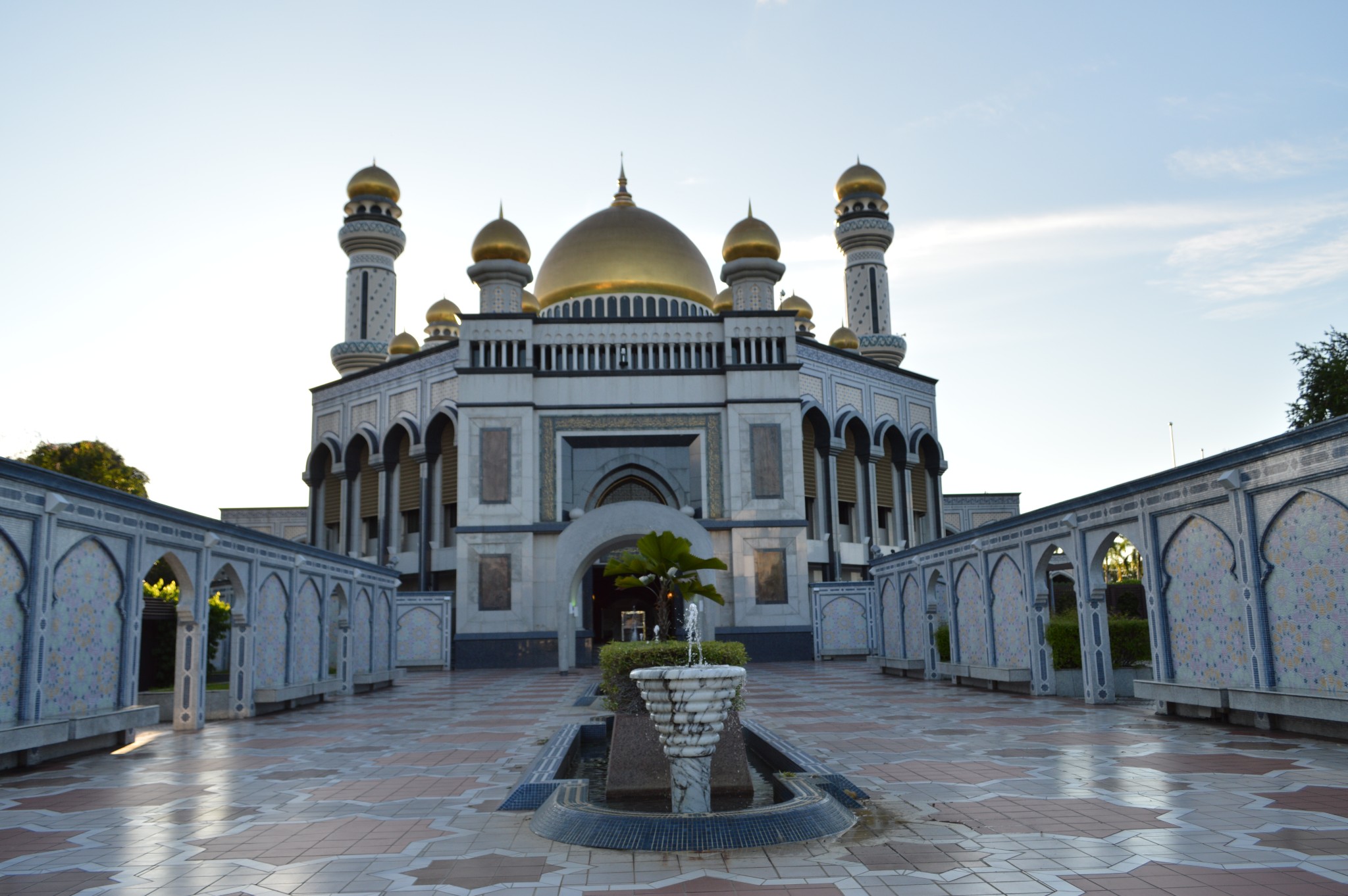 哈桑纳尔博尔吉亚清真寺,也叫蓝清真寺,是现任苏丹修建的。也就是文莱林吉特上印的那位帅哥。真的很漂亮,整个清真寺就像是个公园,有林荫道,有喷泉,还有不同的景观装饰,最重要的是,那个顶是金子做的,金子做的,金子做的。还有个3.5吨重的水晶吊灯。想想就流口水~有钱真好~这样的任性,多么性感~
