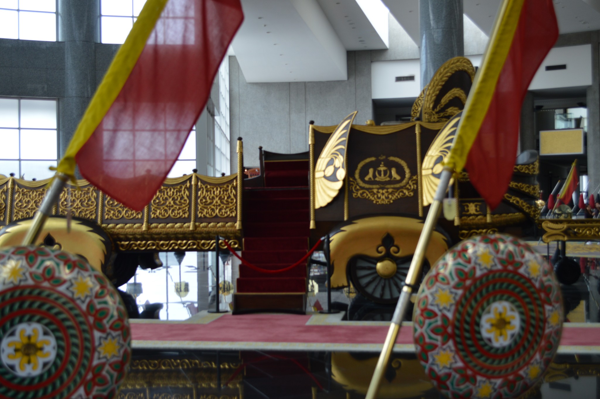 王室陈列馆,也是苏丹银禧纪念馆(登基25周年),这也是我唯一见到文莱警察和军人的地方(街上真心没有警察),也间接证明了里面的藏品都是真的,可惜只有大厅可以拍照,台阶以上都不能拍照,哎,好多金子都没拍到,可惜了,还是等着大家去看吧,有各国赠与的礼品,也有文莱自己的藏品,我英文不大好,也没看太懂,就是看个热闹~