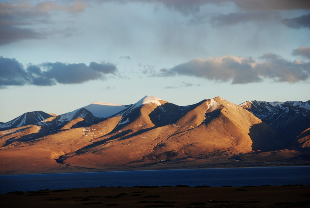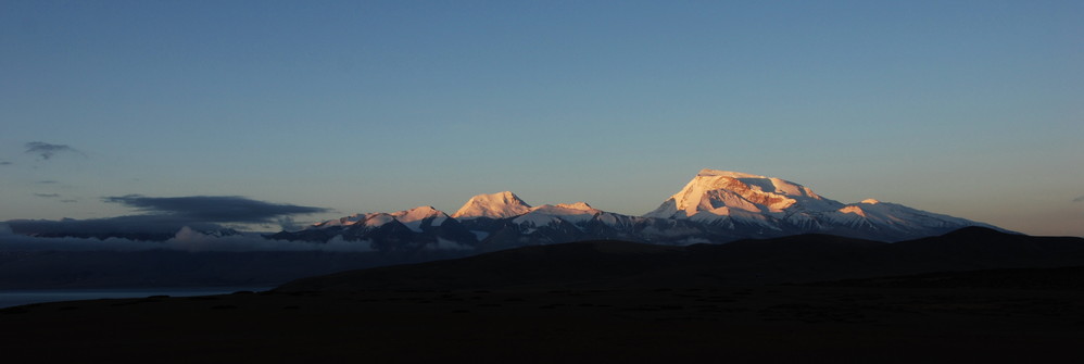 晚上九点,太阳还在高高挂,我们出去,准备等待第二个惊喜!我们把车往普兰 方向,在路中,我想回头看一下神山是否出来,结果神山真的露出来了!第二个惊喜!不禁大叫一声,把bobi也吓了一惊,当大家发现后,即使在车上,我们都开拍了,一定得把神山拍到,这是神山给我们的机会啊!继续开了大概两公里,开上了一个小山坡,原来这才是看神山圣湖日出日落的最佳地点!下面是圣湖、前面是纳木纳尼峰,后面是神山冈仁波齐 ,都清晰展示在我们面前,连扎西普琼都上来了。我们几个人各自找位置拍摄,泉的三脚架也架着走不动,我们就慢慢找着位置。边拍边抖,冷啊,两位团友早有准备,手套已经拿出来。然后的日落真的是非常漂亮!无法相容!(这里省略1000字,更多也行)我想这个日落,绝对是我们的第三个惊喜!不需PS的金色照在纳木那尼峰上,神山虽然角度不算太好,但一小团云照着金色爬在神山上,能够如何形容呢?无法言语!继续省略一堆字!