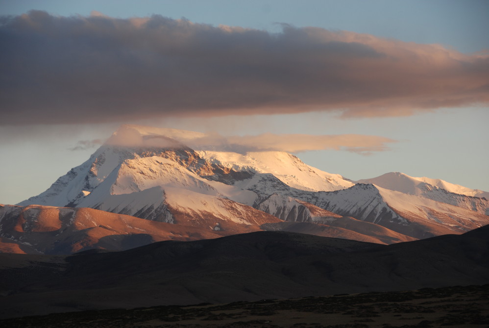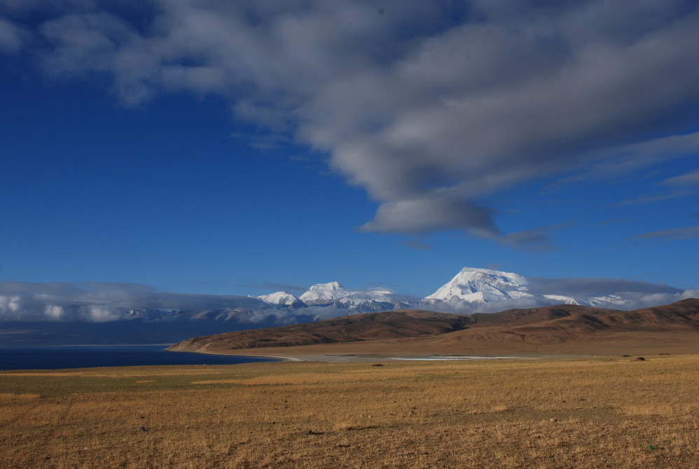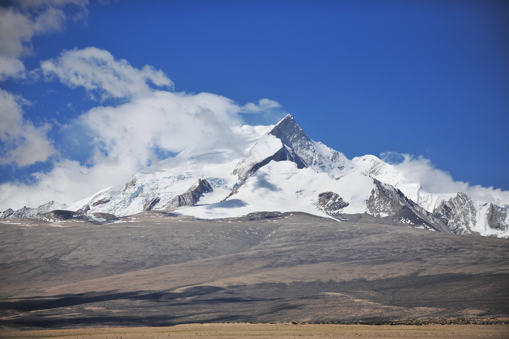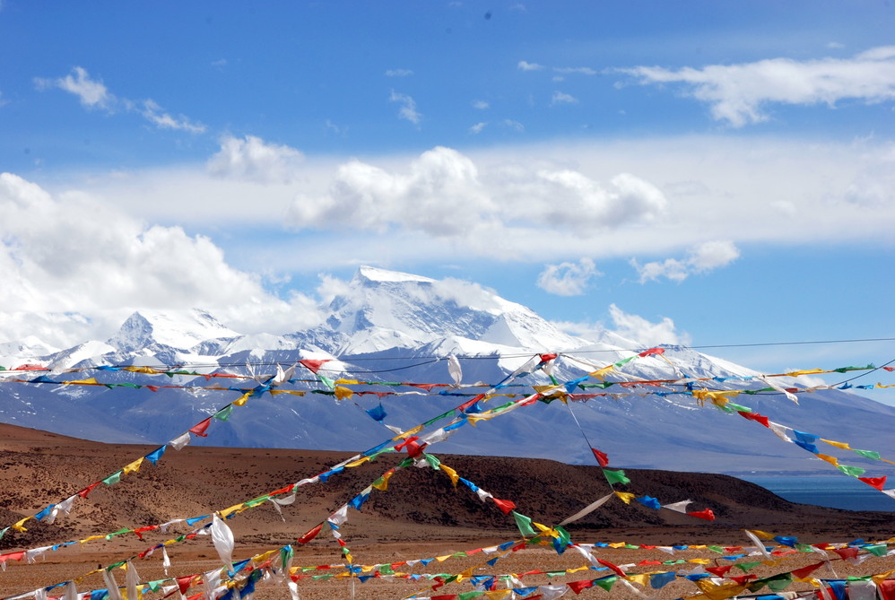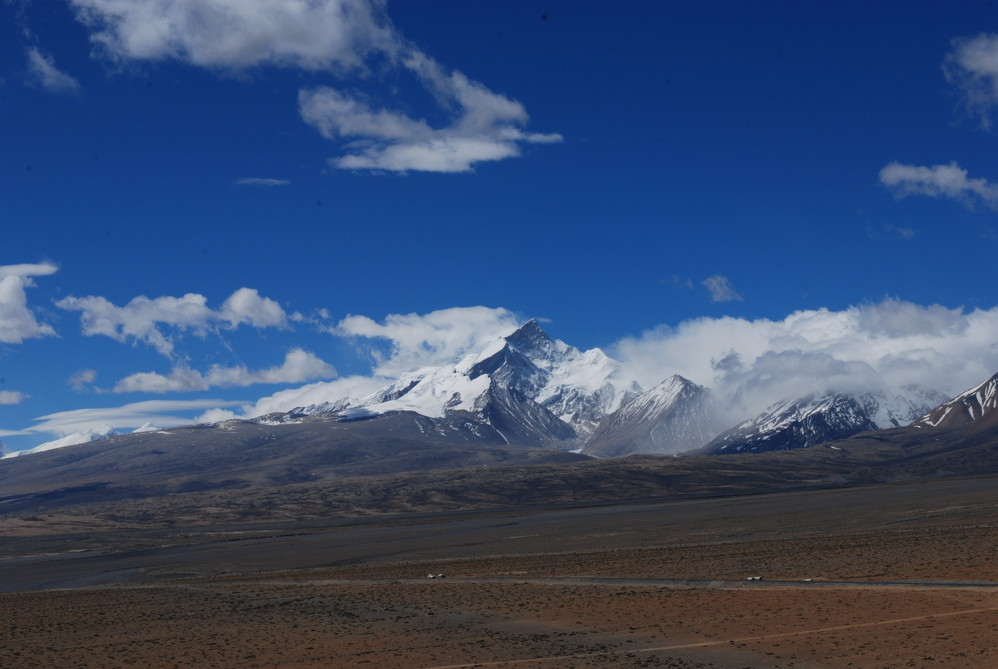 6月2日,萨嘎 至珠峰。早上起来,兴奋中出发,过了雅鲁藏布江 ,向珠峰进发!途中经过了两个湖,一是错戳龙,看到了非常漂亮的倒影,二是佩枯错,她和希夏邦马峰互相对望,佩枯错的湖水深蓝色,非常漂亮,希夏邦马也是非常赏面,主峰在我们面前威武无比,主峰后面的山峰却覆盖着非常漂亮的云团!心想今天真是太幸运,希望下来越来越好,到珠峰也有这种天气就爽啦!