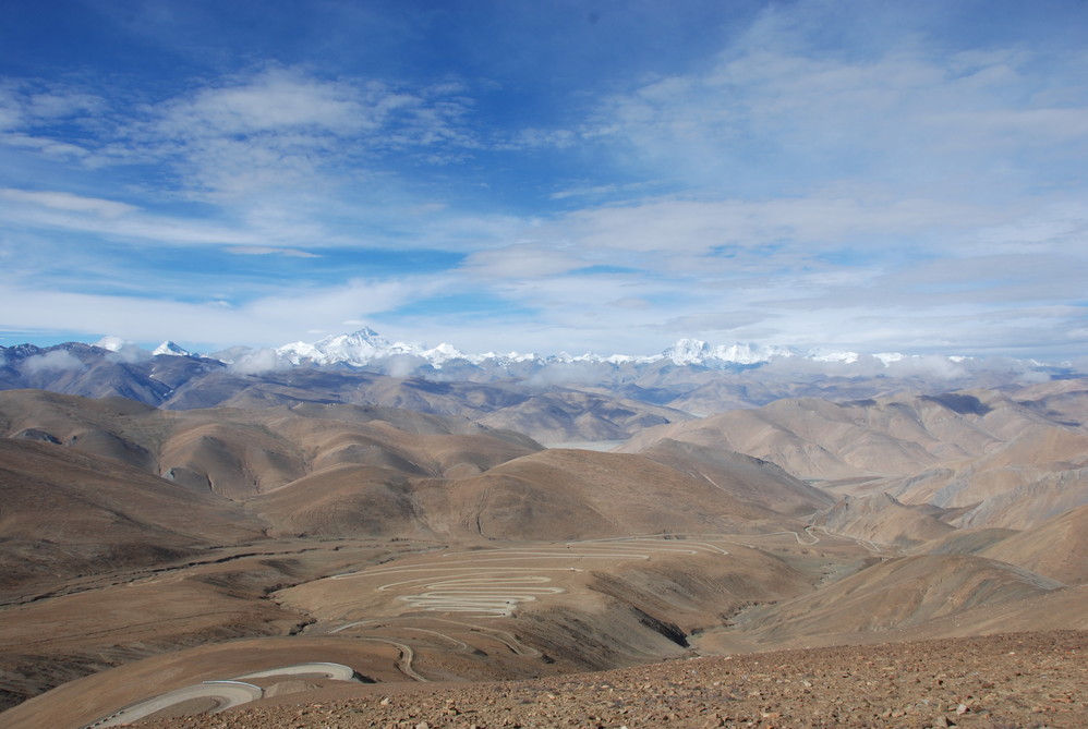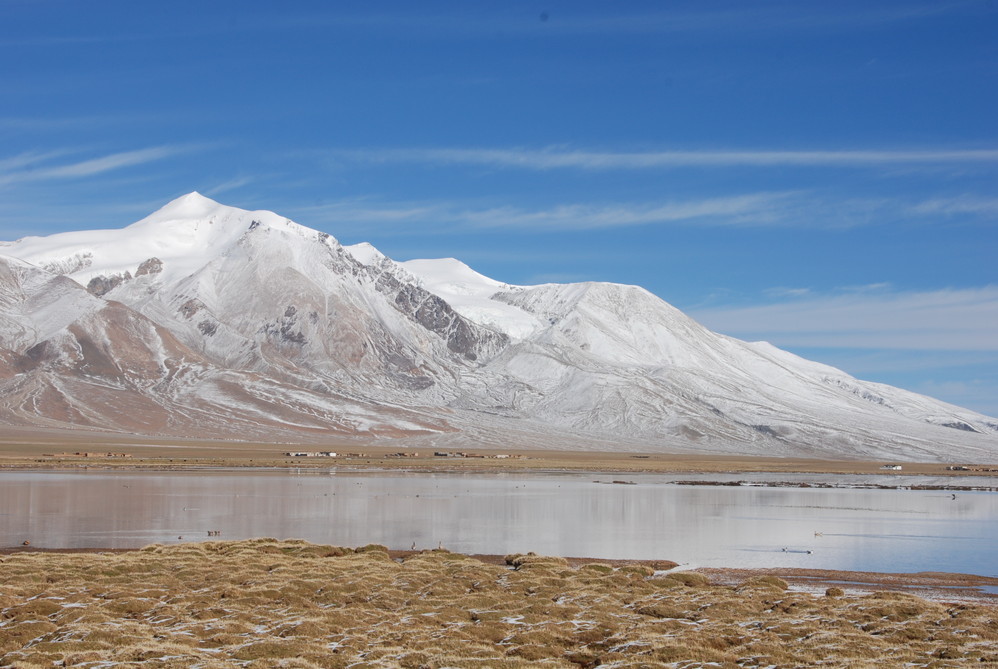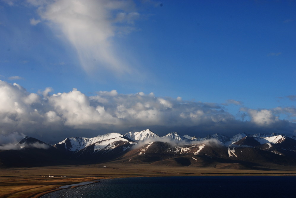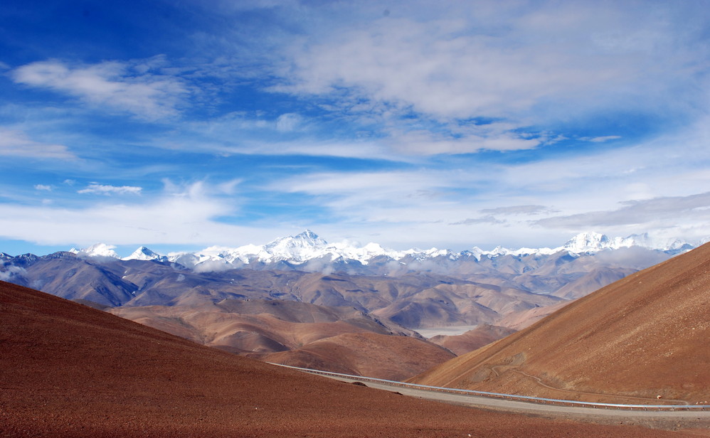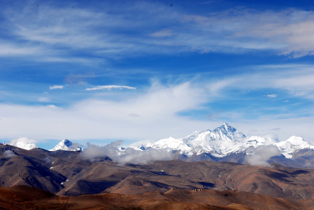 6月2日,萨嘎 至珠峰。早上起来,兴奋中出发,过了雅鲁藏布江 ,向珠峰进发!途中经过了两个湖,一是错戳龙,看到了非常漂亮的倒影,二是佩枯错,她和希夏邦马峰互相对望,佩枯错的湖水深蓝色,非常漂亮,希夏邦马也是非常赏面,主峰在我们面前威武无比,主峰后面的山峰却覆盖着非常漂亮的云团!心想今天真是太幸运,希望下来越来越好,到珠峰也有这种天气就爽啦!