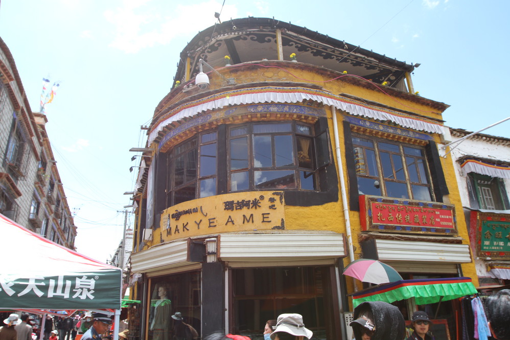 游完布宫,团友在大昭寺后面的玛吉阿米等我们,我们买了红糖后,坐黄包车过去,结果走进去的路很远,走得我们相当辛苦,到八廓街,绕进玛吉阿米时,天阴了,且刮起风,走了好久终于到了玛吉阿米,结果风雨就到了,这样一折腾,头痛又袭来。头痛和味道不合,结果吃了一点点,马上回酒店休息。