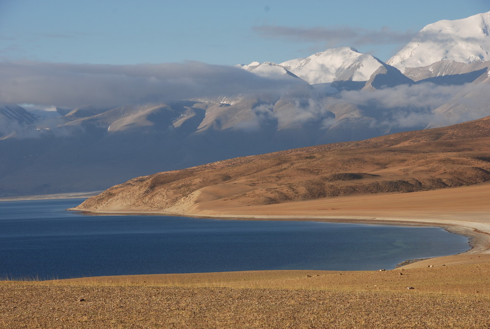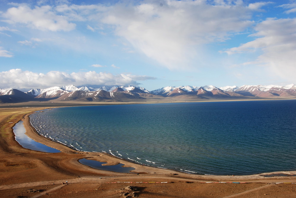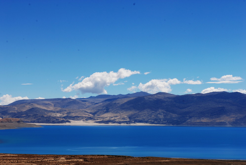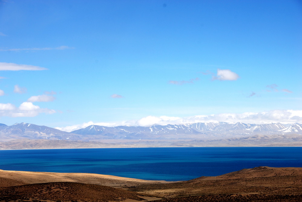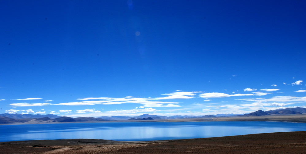 拉昂 错紧紧的依靠在圣湖玛旁雍错的旁边,在她的西面,勾画出一个美丽的月牙状同样蔚蓝的湖泊,而玛旁的形状宛如太阳,她们本来的形状,就展示了一种和谐,一种金刚不二美的极至境界。