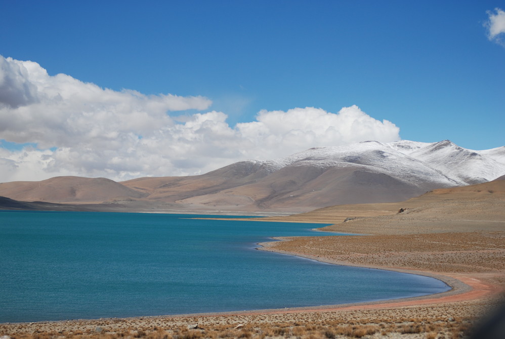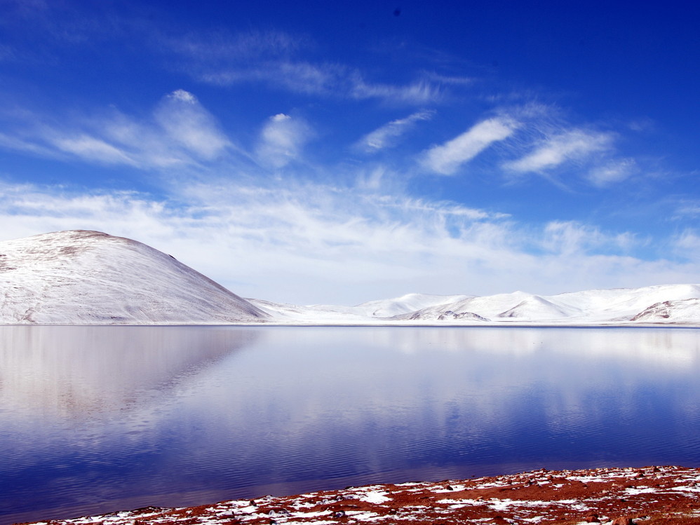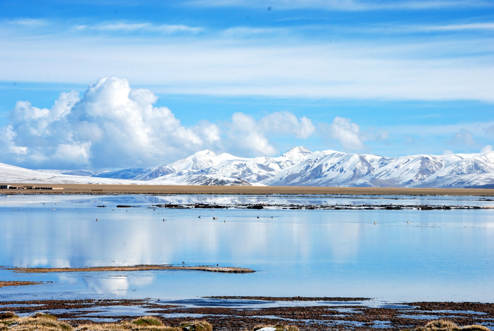 从申扎出来,到了申扎郊外,一幅雪后初晴的图画展示在我们面前!天啊!竟有如此漂亮的风景,阳光照在雪山,湖泊上,那么清晰,申扎自然保护区的鸟类如此多,跟雪山、湖泊一起,在阳光下,每一处都是极和谐和美 丽的,每个人都在狂拍。虽然这时我有点不舒服,胃不停吐出胃气,但风景实在漂亮,提起精神也要好好把风景拍下来,相机拍了,手机继续!后来才知道,这是全程旅行中最漂亮的雪景!
