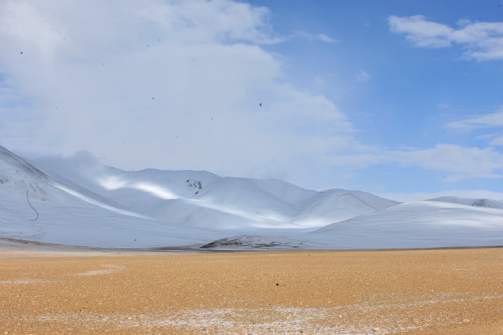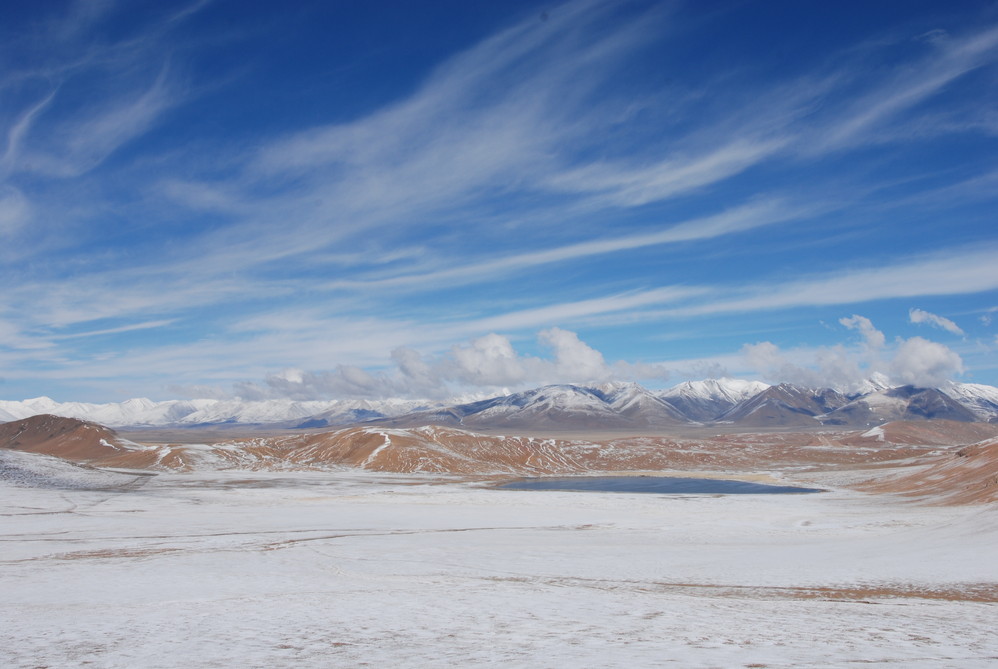 我们从亚热出来,雪渐渐停了,刚上一个小山坡我们回头看,亚热乡和周围的山、土地上都铺满了雪,一些阳光穿过云层在雪山上晒出了一些光斑,确实是漂亮!我们在冰天雪地中,拍下几张相片,继续赶路。离开亚热后,天空逐渐放睛,雪后晴天的风景真是漂亮,虽然比申扎少了水,但风景一样的美丽,成群的野驴使得我们不段停车拍照。快到仁多乡时,天空又飘起了雪,天空灰灰的,当时我们看到一个错,现在想应该是昂拉仁错,那是一个非常大的湖。由于大雪纷飞,我们没有拍照,真的有点遗憾。