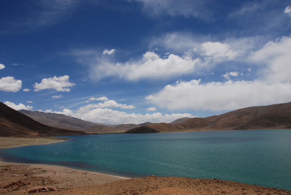 6月4日,日喀则 到拉萨 。由于经过前面实在漂亮的旅程,后面已经没有太大欲望。从日喀则 出来,要经过最漂亮的地方就是羊卓雍错。走307省道,经过卡若拉冰川、宁金岗桑峰都没有太多兴奋,稍拍相片又继续。在浪卡子 村,我们见到了最初跟我们一起出发的彭措扎西师傅,这位非常老实、心地很好的司机又送另外一批游客上珠峰。他见到我们也非常高兴,老问我们身体好不好,可能还在担心我们是否有高原反应,当我们告诉他说我们五个人都非常好,玩得很开心时,挺也憨厚得笑了!这个人真的非常善良!
