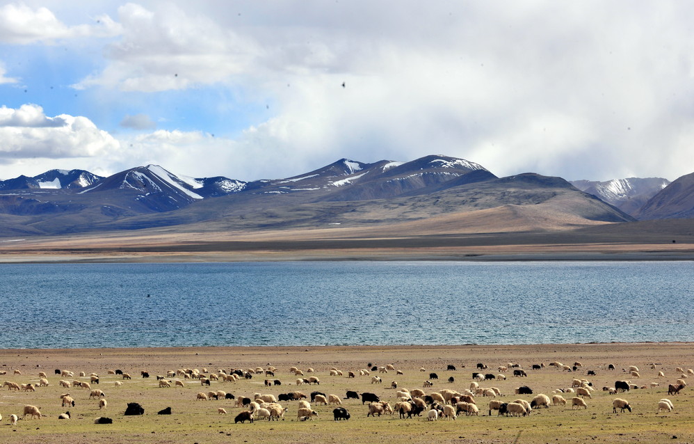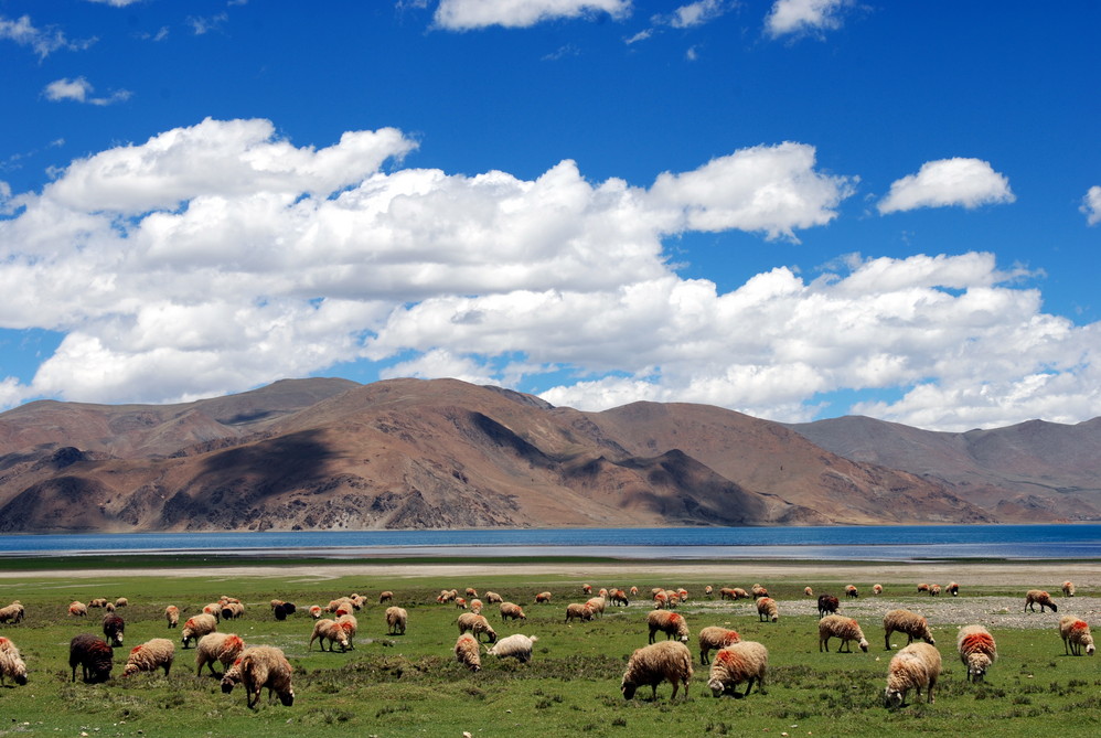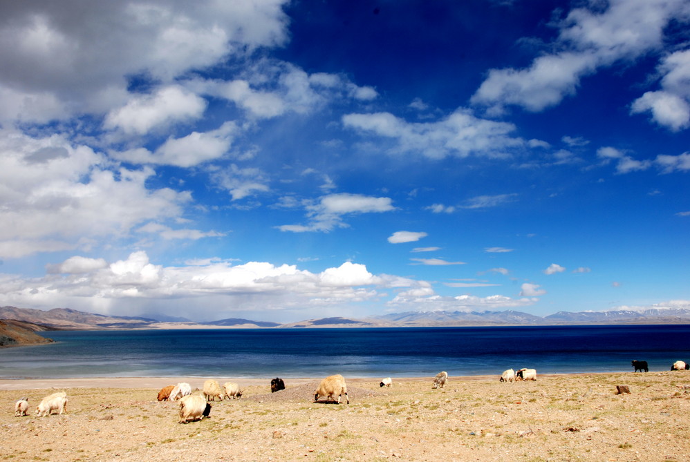 饭后,我们经过一个应该是叫空母错(google地图标的名字,其实这个地方跟羊卓雍错连着的)的湖,湖边的羊群很漂亮,而且阳光极好,拍了一张我自己认为是最漂亮的片片,继续赶路。看了我的相片,bobi和太太都后悔没有下来!这就是眼光了!