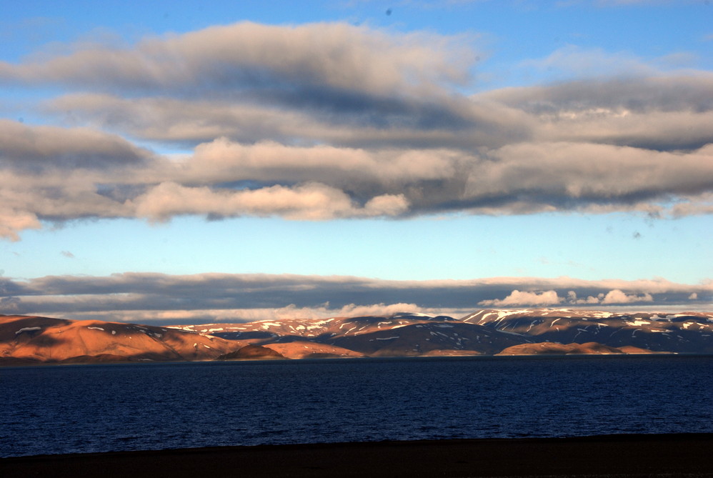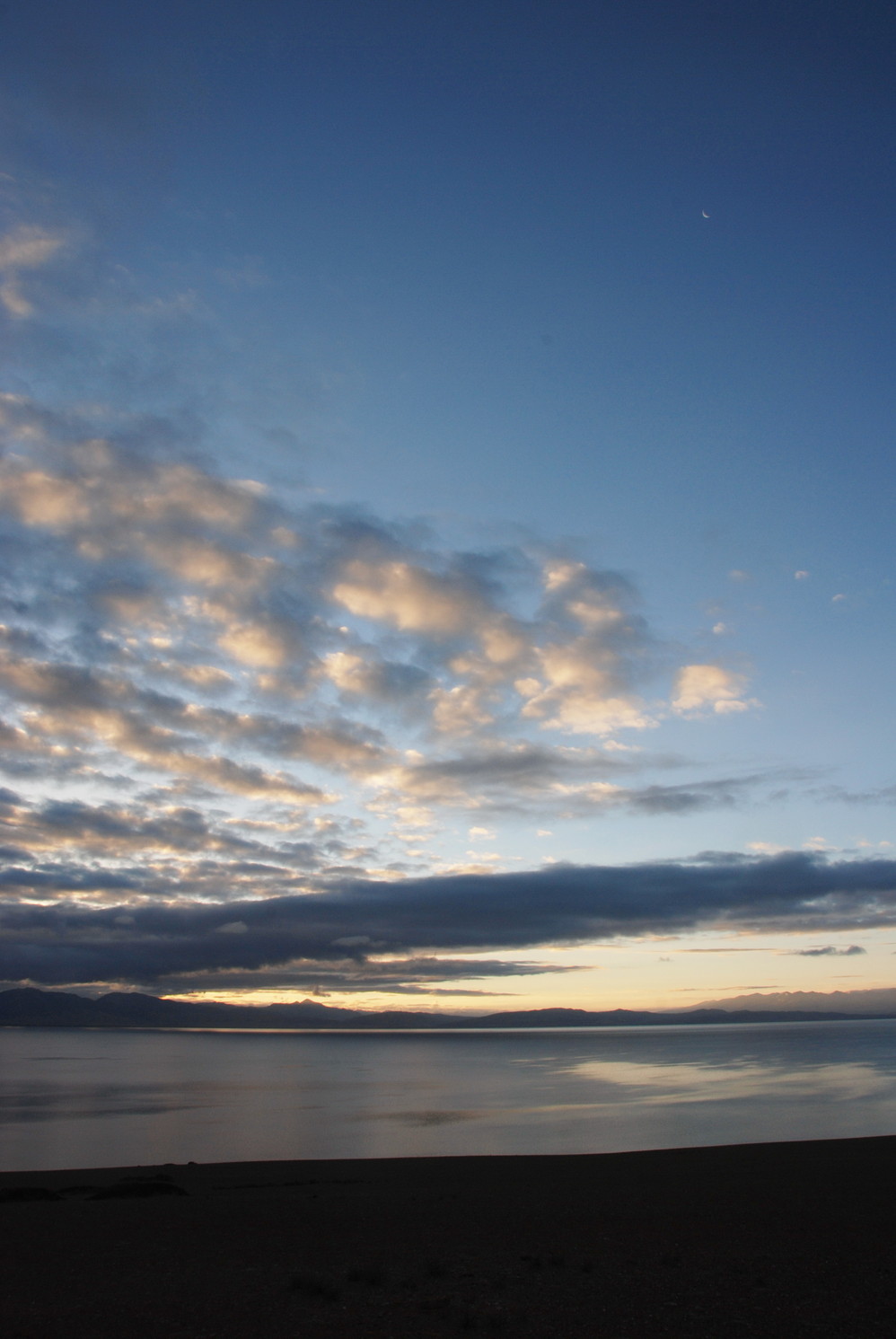 还是开上了那个小山头,更完美的日出!靓啊!虽然冷,但云比昨晚更少,阳光更好,只有两个字可以形容,就是完美!(省略1000字)天空的云彩也分外支持,和圣湖一起,构成了一幅非常漂亮的图,怎样拍都漂亮!看完了圣湖,趁着早上的阳光,到了拉昂 错(鬼湖),鬼湖后面就是纳木那尼峰,想想如果昨晚日落时到这个地方拍摄一下,估计也很漂亮!说不定这里才是拍纳木那尼峰的最佳位置!