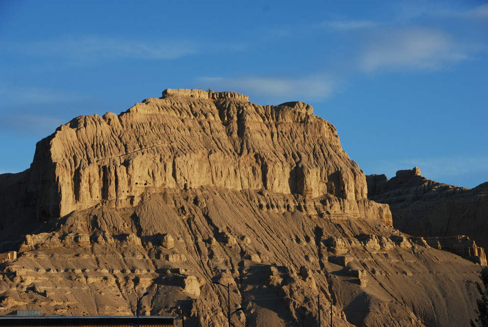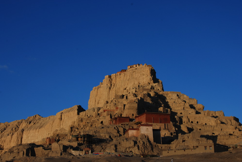没多久,太阳一下子出来了,古格王朝遗址在阳光中,树立在山坡上面,依旧显示着他的崇高地位,从下面看上去,皇宫实在太高了,只有那么一点点!想当年,那些要进攻他们的入侵者,是否也有一点畏惧?